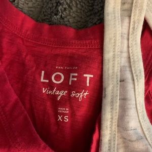 Three tanks. One dark pink from LOFT size XS but fits like S is NWOT, one gray and white star is NWT size S, and one peach by MUDD size M but fits like S.