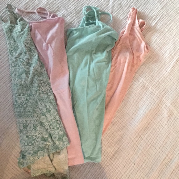 Left to right xs, xs, xs, m bundle all together but medium can fit as small. Plain turquoise top has small stain size of a nickel but not very noticeable $5 take all