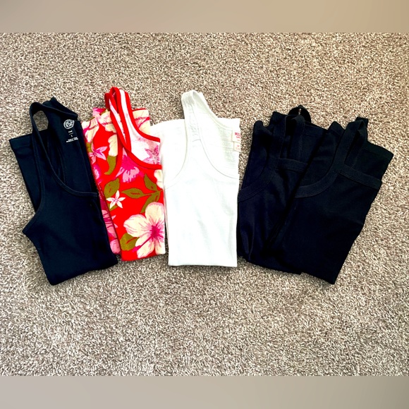 $2/each $10/ all Size small Layering tanks 3 black 1 white 1 red/multi colored