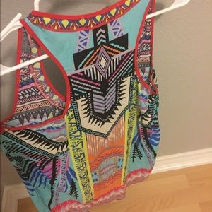 This razor back tank/tunic is longer in the back. The colors of this print are AMAZING!! 2 smalls & 1 medium available!