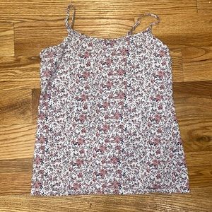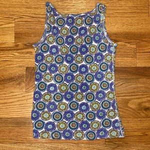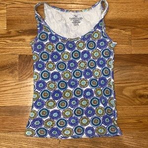 Two gently worn, cheerfully patterned tank tops Floral is from Loft (L), blue circles is Faded Glory (M 8-10)- fit is about the same