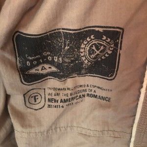 Tankfarm Mens Jacket Coat Military Inspired Beige Button Front Rebel Riders L Excellent pre owned condition. No defects. Brand: Tankfarm Size: L Style: Jacket Coat Color: Beige Pattern: Solid Length: Hip Length Outer Shell Material: 100% Cotton Sold as pictured. Thanks for looking!