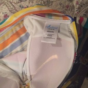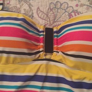 Super cute multi color tankini. I wore it during pregnancy, but it is a normal L top. Can be worn with multiple bottoms!