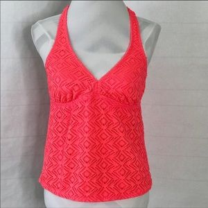 Coral color. This is a reposh. Great condition, it is missing the bra pads but those are easy to switch out from most sports bras and suits these days.