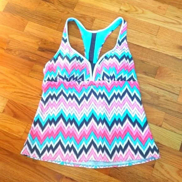 Beautiful colors, Tankini in very good condition. No tag inside, but I'm certain it's a size 12 and I think it's an Xhilaration brand.