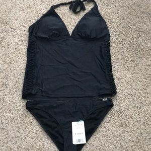 NWT black tankini. XL however it’s smaller. More like Large. Halter top with side braiding opening as pictured
