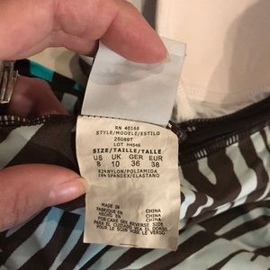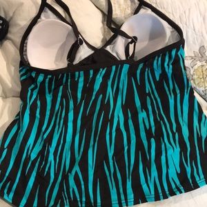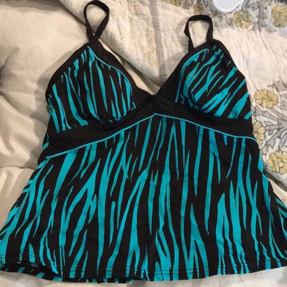 Teal & brown zebra-stripe tankini; size 8; good coverage; like new