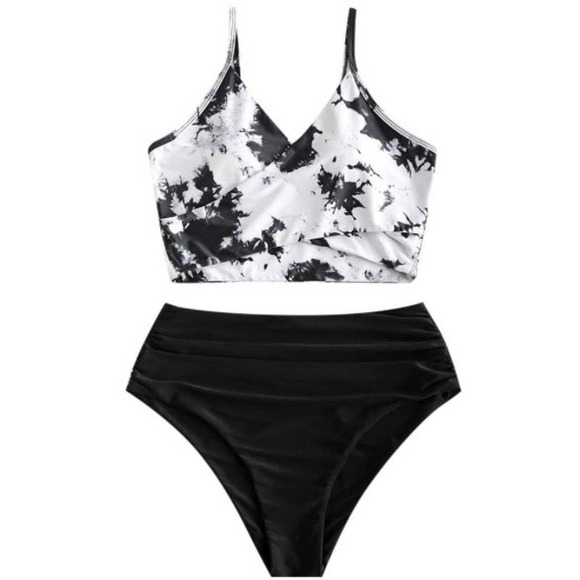ZAFUL Tie Dye Swimwear Ruched High Waisted Tankini Tank Top Swimsuit(Size S)