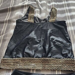 Stylish black tankini with gold sequin detail. Built in padded bra. Super cute. Never worn