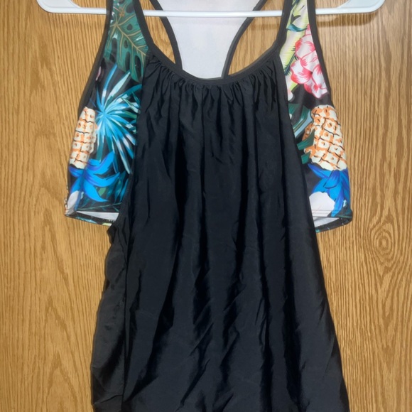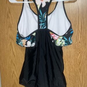 Women’s tankini. Comes with two bottoms. Size medium. Top worn once bottoms a few times. No flaws.