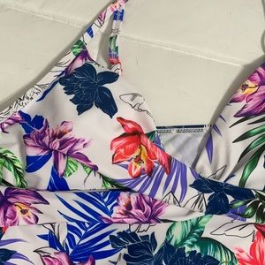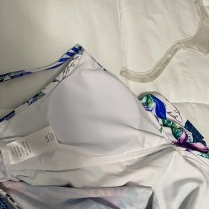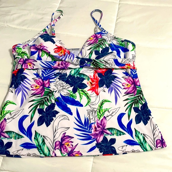 Tankini Top. Ordered, tried on and never worn. White with multi colored flowers. Cups are removable . Adjustable straps. Laying flat, armpit to armpit is 17”. Length from armpit down to bottom is 15”.