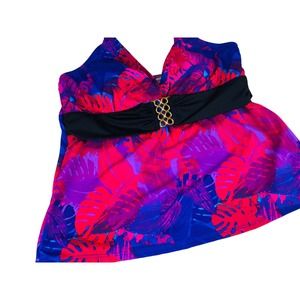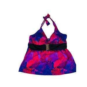 Tankini Top Women 14 Red Leaf Print Halter Swimwear Tropical Bathing NWT 3862
