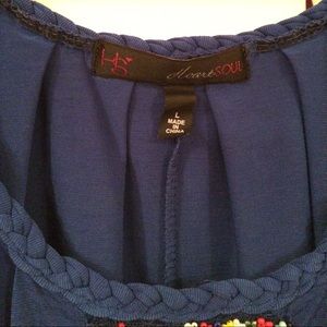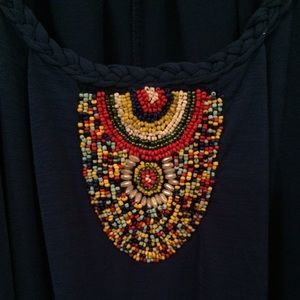 Royal blue tanktop with beading. Togh around the bootom then flowy around the middle and top.