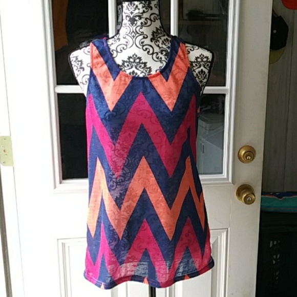 Blue, orange and pink diagonal striped tank top...28in shoulder-hem...18in pit-pit..