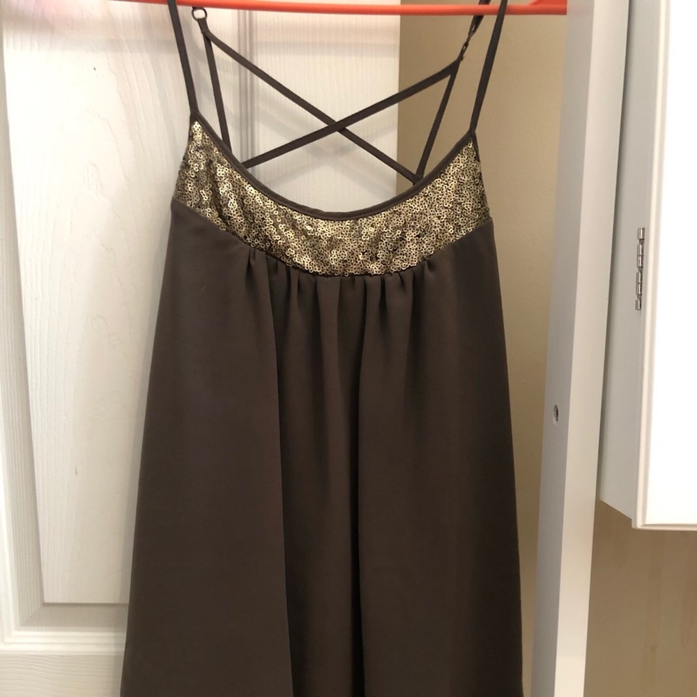 Army green tank top with gold sequin, never worn. Size small. Make offer.