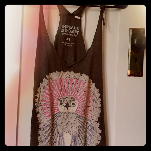 Grey tank with owl graffic, very light weight, cute straps. Size XS