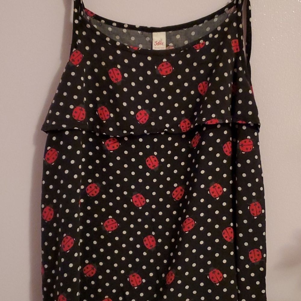 Has cute ladybugs and polkadots on it (actually a size 16 in kids)