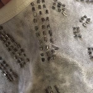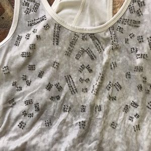 Cute long tank top with low arm hole. Does have a small section of a bead loose, otherwise good condition.