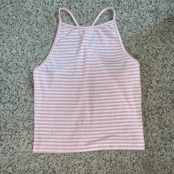 Pink and white striped tank top. Racerback. No stains, rarely worn