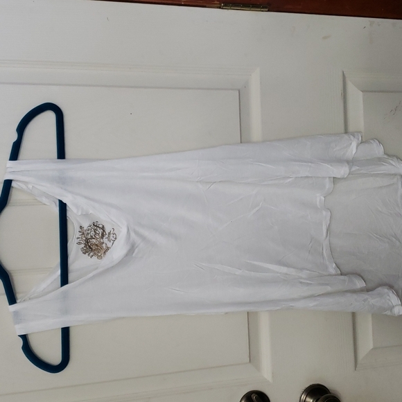 Poof brand white v neck tanktop, longer in back. size is l, brand new never worn.