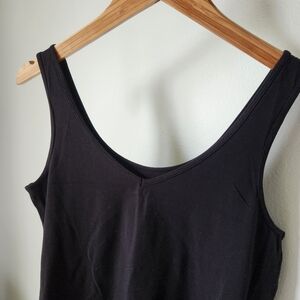 Never worn, black tanktop with v-neck on one side and scoop neck on the other.