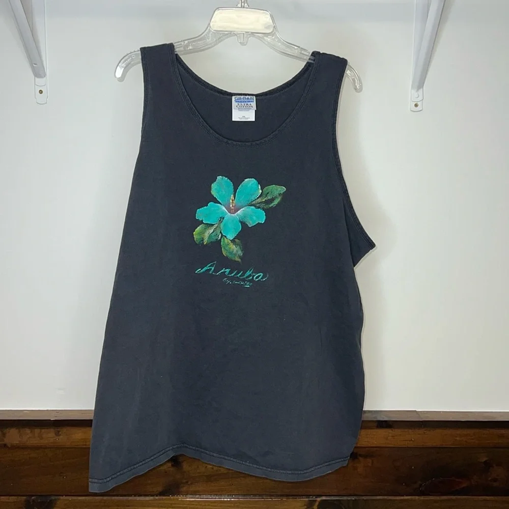 Hand Painted Aruba Hibiscus Tanktop see flaw pictured