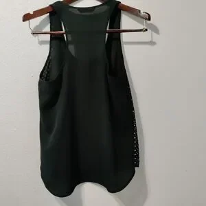 Black tank top by Banana Republic. Don't remember the size. Size tag fell off. Either XS or S. Racer back and semi-see through material. Front has an additional large mesh layer. Cute for the summer.