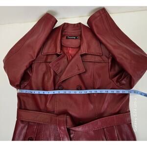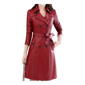 Features: Soft buttery faux leather; Fully lined; Lightweight: Belted; Double breasted; Pockets