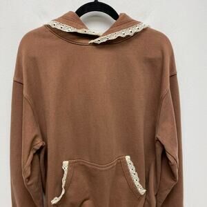 Tanner Fletcher Genderless Brown Lace Trim Pullover Hoodie & Jogger Set S $640