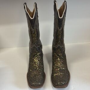 Tanner Mark Gold Copper Brown Glitter Talk Cowboy Boots