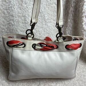 Tanner made in Italy leather off white scarf shoulder bag antique tone hardwares snap top closure the inside lining has a side zipper two side pockets.pre owned in good used condition some yellow marks on the lining but clean see all pictures any questions please message. C2