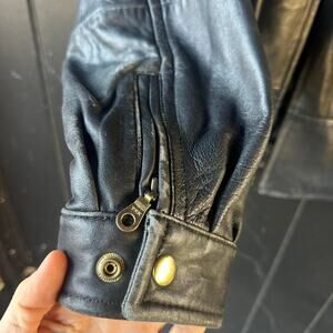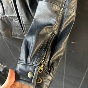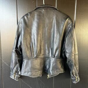 Classic, timeless leather jacket with a clean, structured fit. Black genuine leather with full zip front, zippered pockets, and a soft lined interior. Slight natural wear throughout that gives it that perfect broken-in vintage feel. An easy staple piece that works with literally everything.