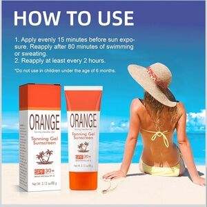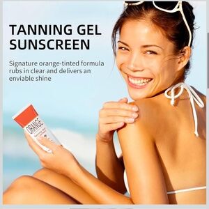 Orange Tanning Gel Sunscreen SPF 30+ – Hydrating Balm-to-Oil Bronzing Formula with Coconut Oil, Vitamin E & A – Non-Greasy Sunblock for Smooth, Glowing Skin – 3.12 oz (1)(10$)