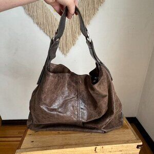 Stylish Tano hobo bag. Rich brown leather with striking silver accent. Perfect for everyday use.