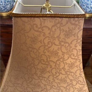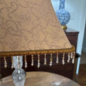 Tan tone on tone brocade Victorian style square lamp shade 14” beaded trim