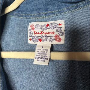 Tantramz Vintage Denim Patchwork Christman Button Up Shirt Lg
