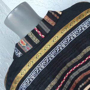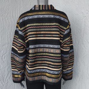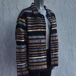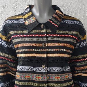 TanTrums Tag size XL * 100% Cotton * Black with Metallic Gold * Pink and Burgundy Accents * Button Front * Beautifully Made. This should make a wonderful gift, or lovely to add to your vintage collection.