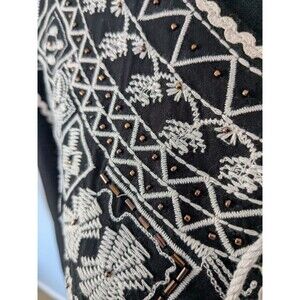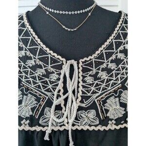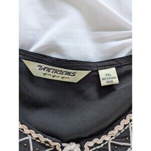 Tantrum Top Womens Sz XXL Black Cream Gold Embroidery Boho Beaded Peasant Blouse
