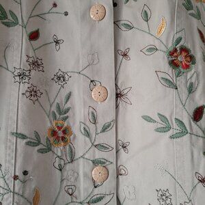 Tantrums Button Front Floral Embroidered Beige Women’s L Jacket, Like New, EUC