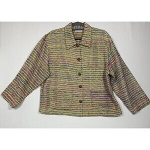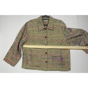 Tantrums Collection Blazer Womens Large Iridescent Silk Beld Gold Thread Jacket