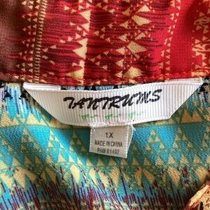 Tantrums | Tribal Print Striped Notched Neck Pullover Blouse 1X