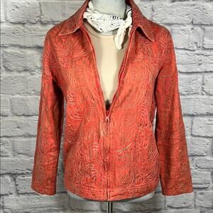 Embrace the warmth with this Tantrums Coral Zip Up Jacket, crafted from soft cotton fabric. This casual zip-up design features a standard collar and a fitted silhouette, making it a stylish choice for everyday wear.
