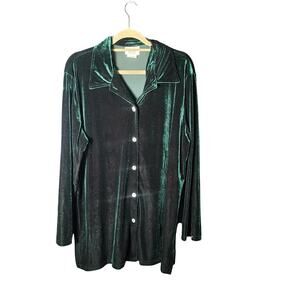 Tanuja Dior XL Emerald Green Stretch Velvet Side Slit Shacket Button Up Top EUC