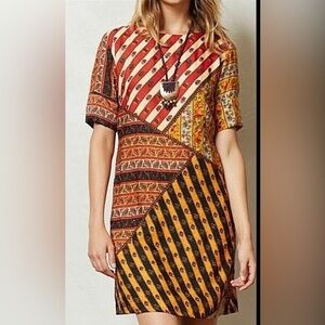 Tanvi Kedia Anthropologie Multi Print Dress Beaded, bohemian style dress, Large