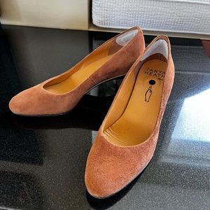 Tanya Heath "Sabine" Noisette Suede pumps with 2 set of heels.
