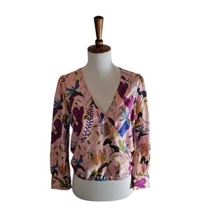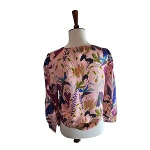 Tanya Taylor 100% Silk Pink Floral Blouse 2 Preowned