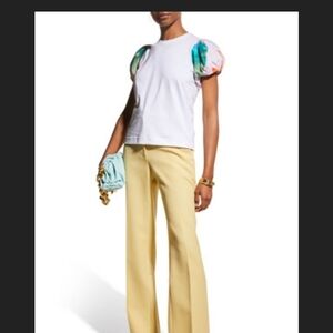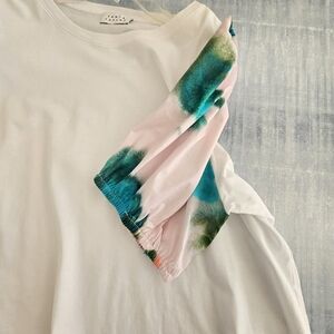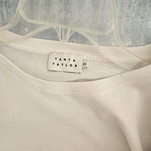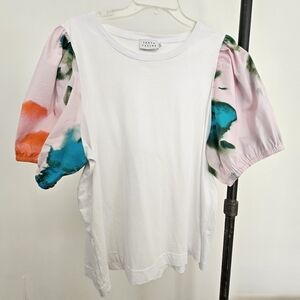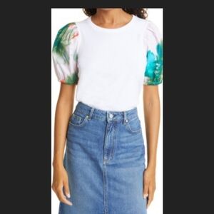 Tanya Taylor 3X White Tee Elevated T Shirt Watercolor Puff Sleeve Organic Cotton