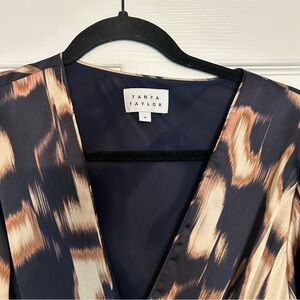 Tanya Taylor Blaire Tie-Waist Printed Dress Cream Maritime Blue Tan