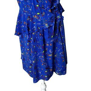 Tanya Taylor Blue Silk Wrap Dress Ruffle Hem Madelena Size 8
