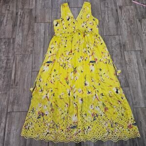 Tanya Taylor Catalina Silk Maxi Dress Floral Yellow Size 16 Sleeveless V-Neck